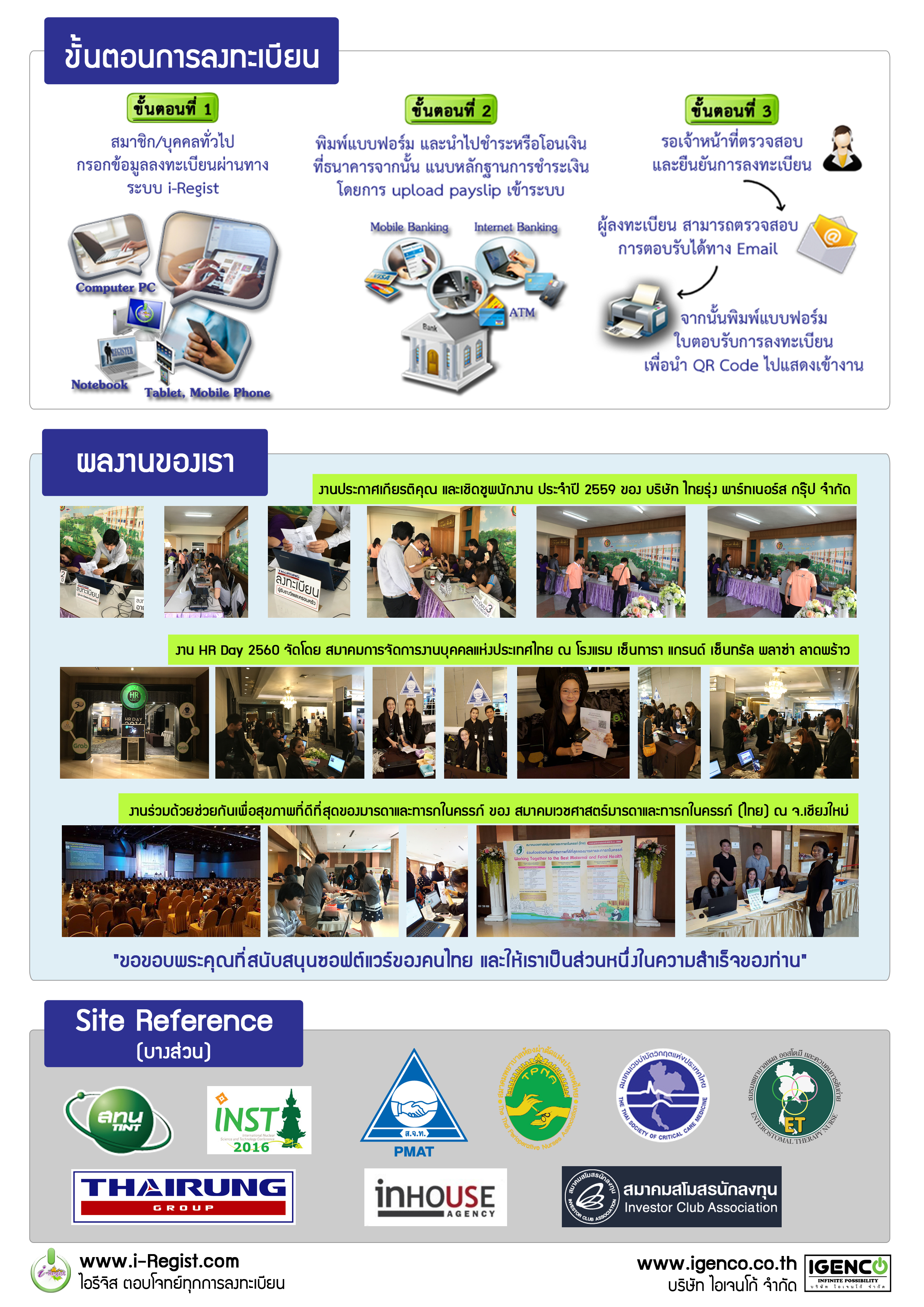 ระบบลงทะเบียนออนไลน์ ไอรีจิส รองรับงานสัมมนาวิชาการ, อีเว้นต์, ฝึกอบรม, ประชุมผู้ถือหุ้น